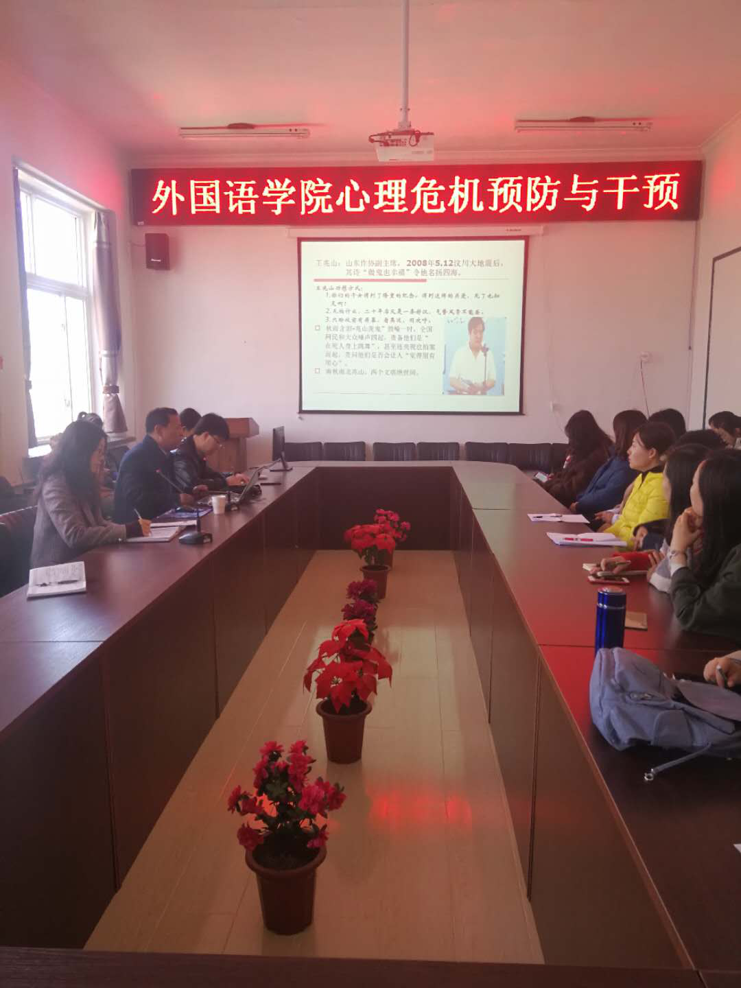 于2019年3月13日下午邀请校心理发展与健康管理中心主任肖文学教授开展了以“心理危机预防与干预”为主题的讲座。学院党委副书记张亚男、全体辅导员、班导师、主要学生干部,各班班长、团支书、心育委员参加本次讲座。