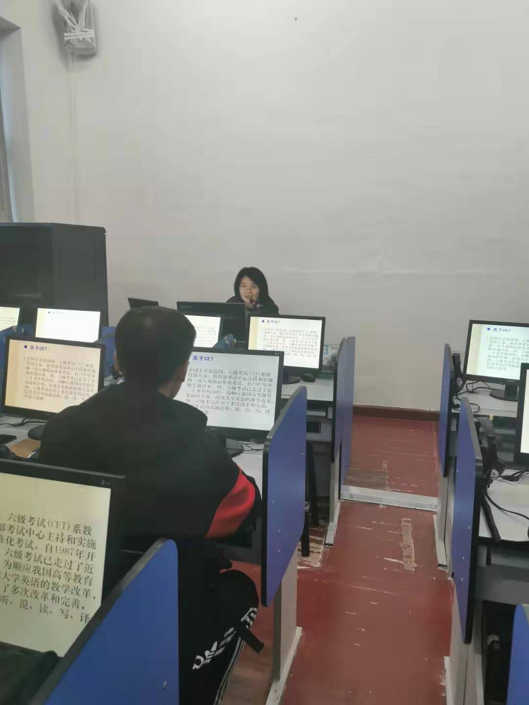 于知行楼语音室5举办科研训练讲座——大学英语四级高分考试策略解析,由学院副教授范洪涛老师主讲,全体19级新生参加此次讲座。
