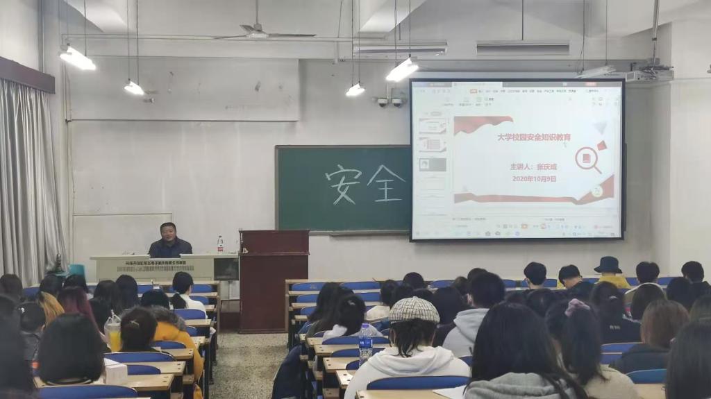 好色視頻 于2020年11月17日晚6点30分开展安全知识教育讲座,此次讲座由校公安处处长张庆成副教授主讲,学院全体学生参加本次讲座。