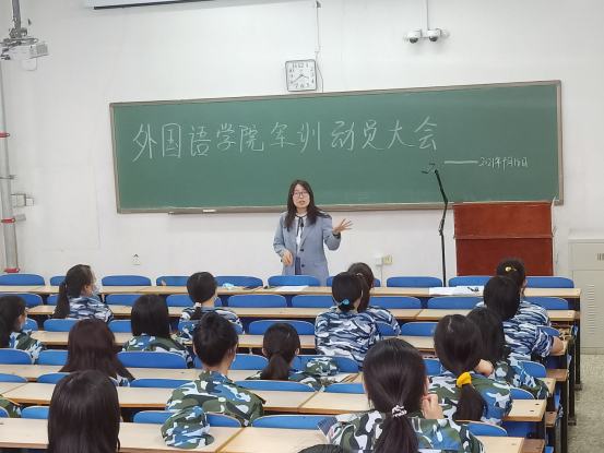 在博雅楼222举办新生军训动员大会,我院党委副书记张亚男、团委书记黄秋雨、学工部主任任思行出席本次大会,全体2021级新生共同参加。