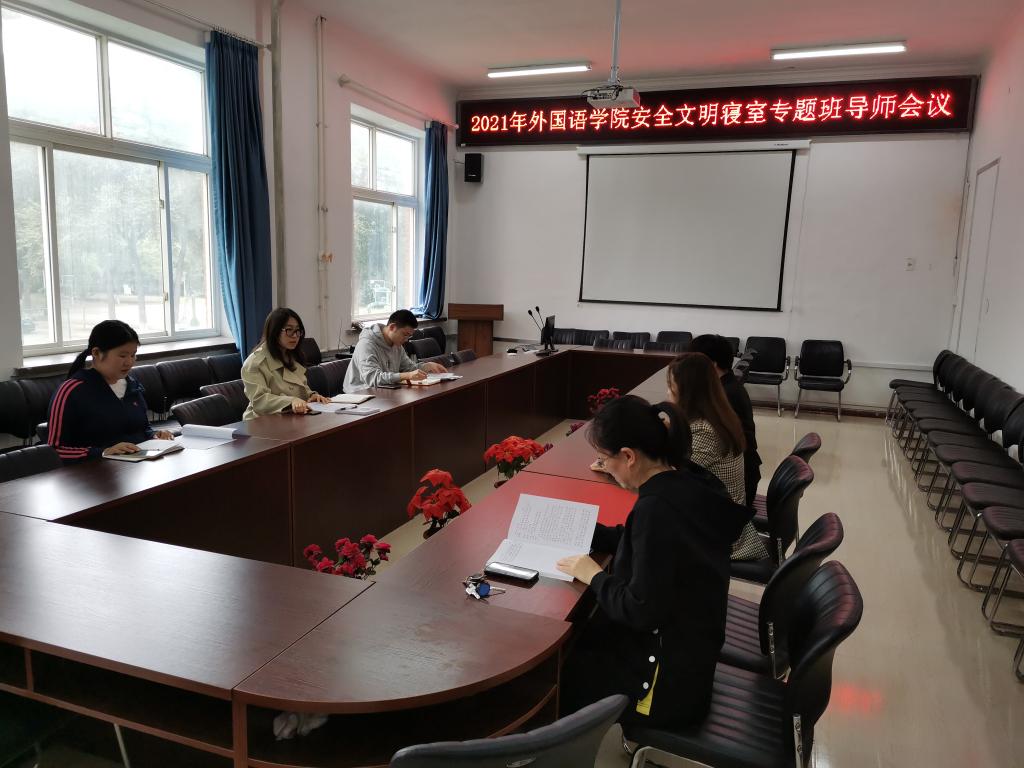 安全文明寝室专题班导师会议,出席本次会议的有学院党委副书记张亚男、年级辅导员及各班班导师,会议由张亚男主持。