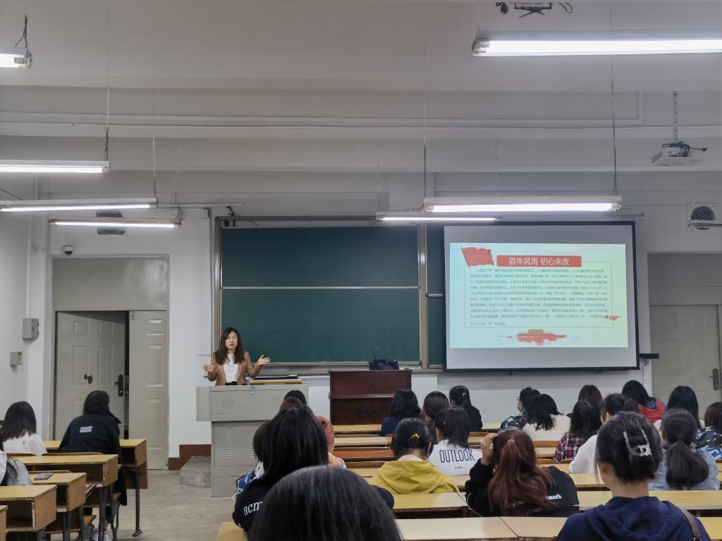 学生党支部组织2021级新生于9月28日晚7点在新华楼105开展入党启蒙教育讲座,本次讲座由学院专职组织员宋红雪老师主讲。