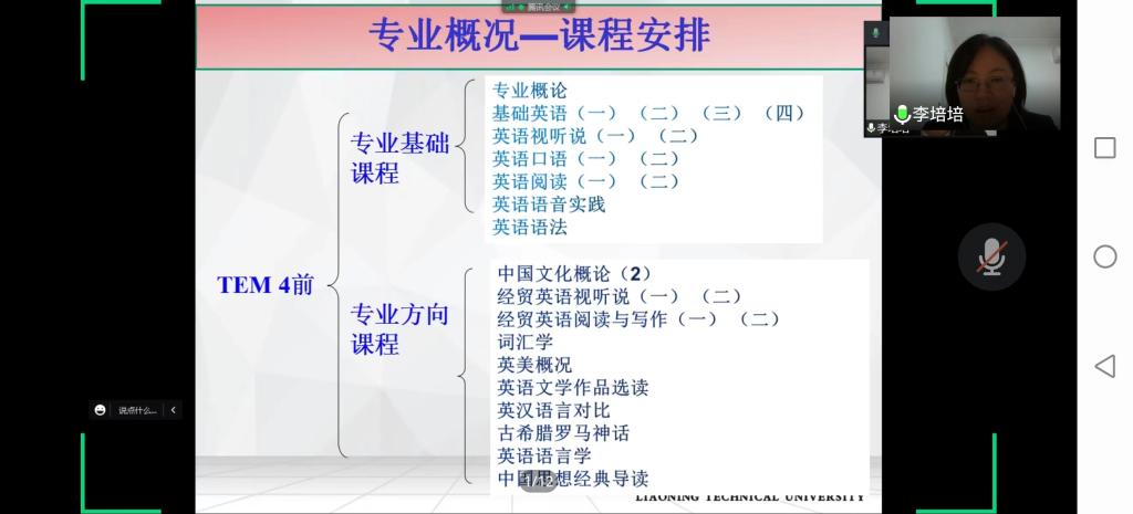 李老师将此次讲座分为专业概况、专业学习和学习建议三个方面。首先,李老师介绍了几位我院优秀毕业生、就业方向培养方案、专业课程和通识基础课程、英语等级考试的要求和相关题目类型等内容,并鼓励大家积极参加英语竞赛。然后,李老师传授新生学习方法,要以课堂学习+自主学习+非正式学习的模式做好学习规划,着重提高听力和口语的能力,以“书山有路勤为径,学海无涯苦作舟”的态度对待学习,合理规划时间,同时也要充分凭借学校的平台完善自我。