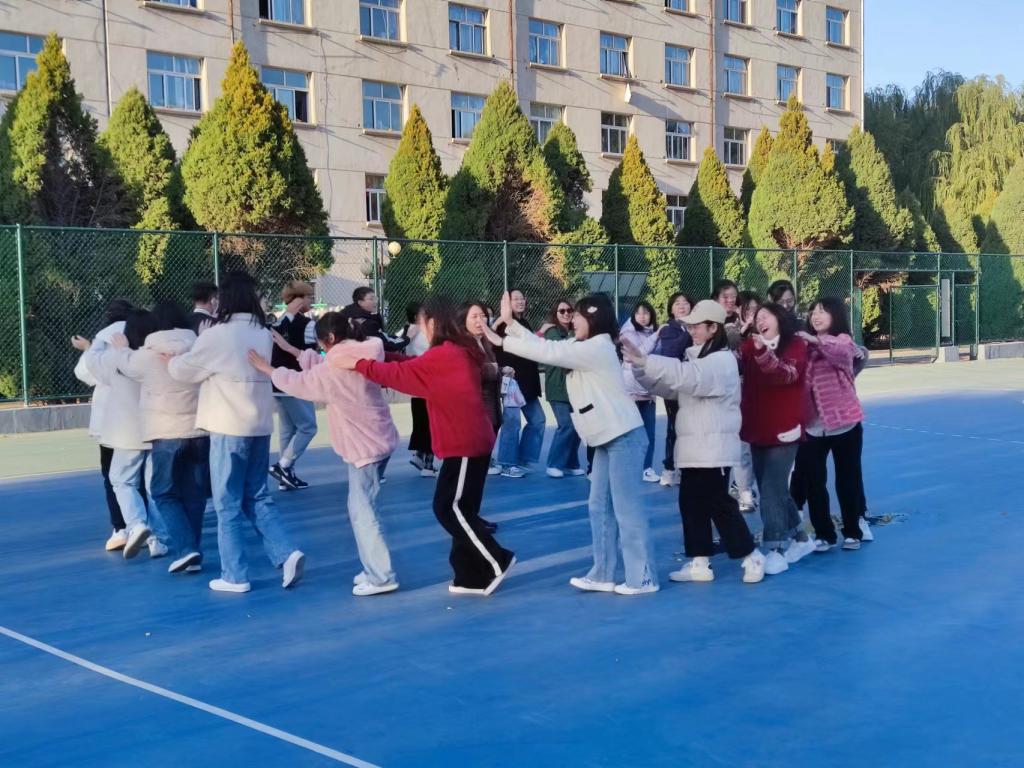 活动从热身项目开始,2022级学生进行从头到脚的热身活动和“叠罗汉”活动,活跃了现场气氛,激发了同学们的兴趣,为同学们进行拓展训练做准备。接下来,进行了“组建团队”项目,老师带领同学们组建团队,每个队选出队长,决定队名、口号并进行成果展示。然后进行了“蛟龙出海”项目,此项目考验各班的团队协作能力,也对学生们的耐心、沉稳度进行了测试。最后以“红色轰炸”项目结束,说一说其他人的优点,活动全程,同学们积极参与,积极与老师互动。