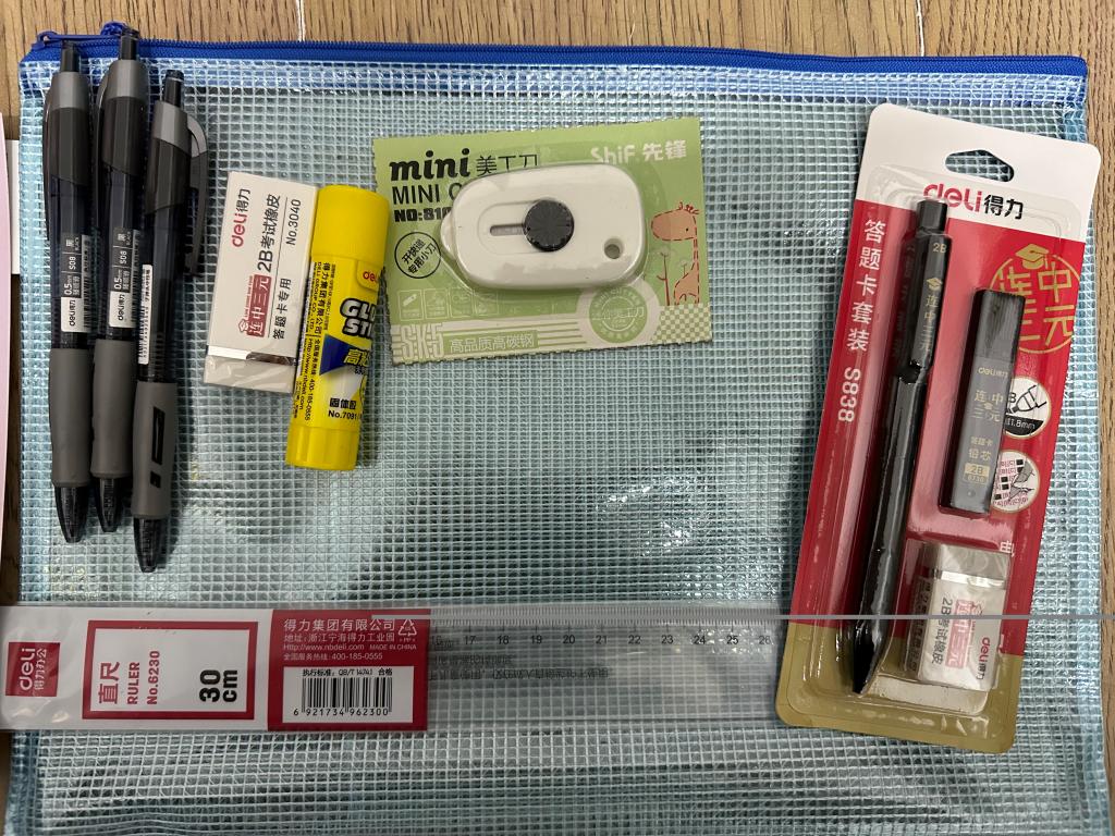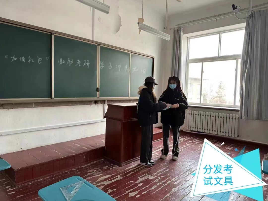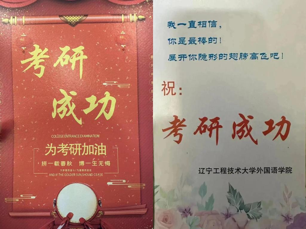 为全院55名考研学子送上了祝福卡片以及考研必备文具,并询问其备考情况,为考研学子加油打气。祝福卡片选用了红色版面,寓意“红红火火”,其上印有“考研成功”等祝福语;文具袋中装有涂卡笔、中性笔、格尺、橡皮、固体胶、小刀等考研文具,这份礼物不仅承载着学院的心意和祝福,更是一条连通学院与学生心灵的纽带。