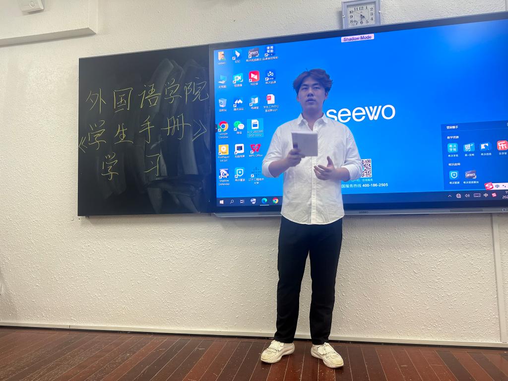 于9月8日晚上6:30在博雅楼203室开展《学生手册》学习的活动,本次学习活动由学院辅导员杨雯雯主持,学院自委主席邹德俊主讲,全体2023级新生参加。