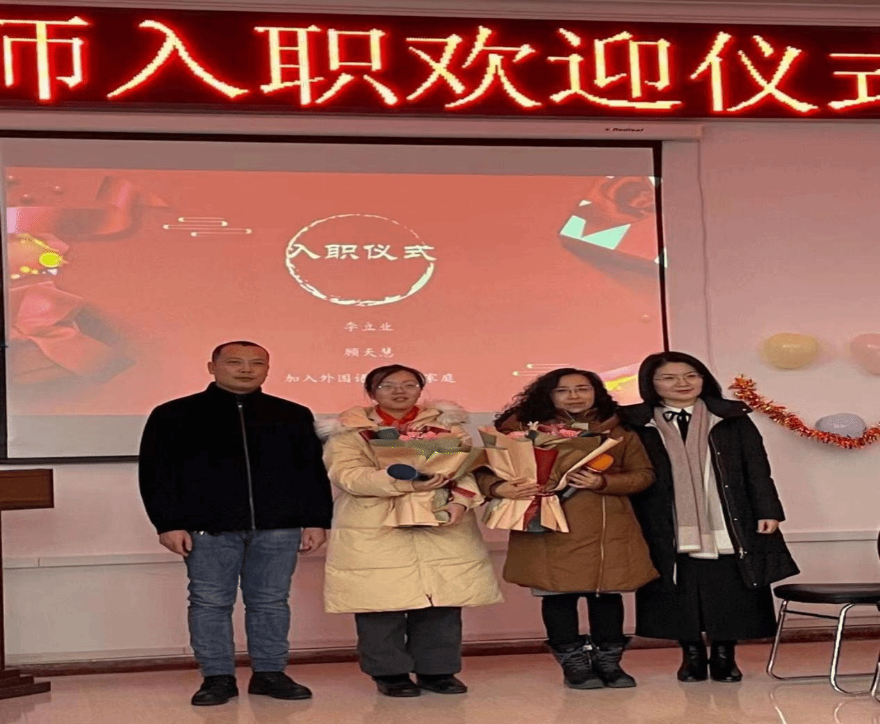 随后,举行了新入职教师的入职欢迎仪式,副院长冯雪、范洪涛为李立业老师和顾天慧老师赠送鲜花,欢迎他们加入学院大家庭。