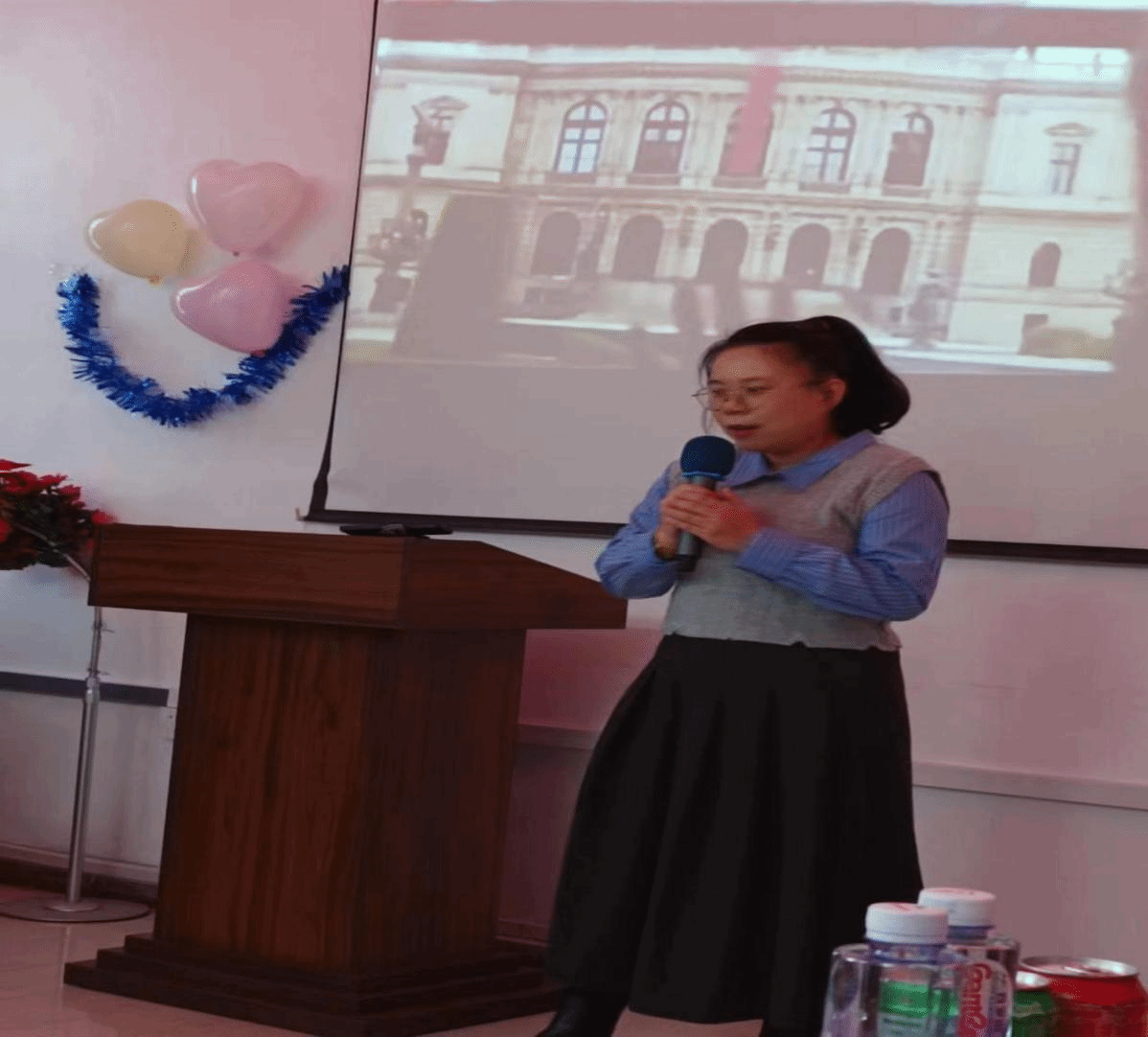 在联欢会上,老师们尽情表演节目。院长王丽首先演唱了一首俄语歌曲,充满深情,文艺范十足。副院长冯雪的巴乌独奏《月光下的凤尾竹》,美妙的旋律吸引着大家。邢晓红老师和郭跃老师跳起了精心排练的舞蹈,展现出了青春的活力,赢得阵阵掌声。孙瑜老师、黄秋雨老师分别演唱了精彩的英文歌曲和中文歌曲。李立业老师带来了舞蹈《阿里山的姑娘》。冷德军老师的语言类节目给观众带来阵阵笑声。包国辉老师带领蒙古族艺人表演了歌舞,大家为他们的精湛表演欢呼鼓掌。最后,院党委书记苏海泉、副院长范洪涛合作的诗朗诵《相信未来》,声情并茂,令人奋进,鼓励大家为美好的未来而努力奋斗。