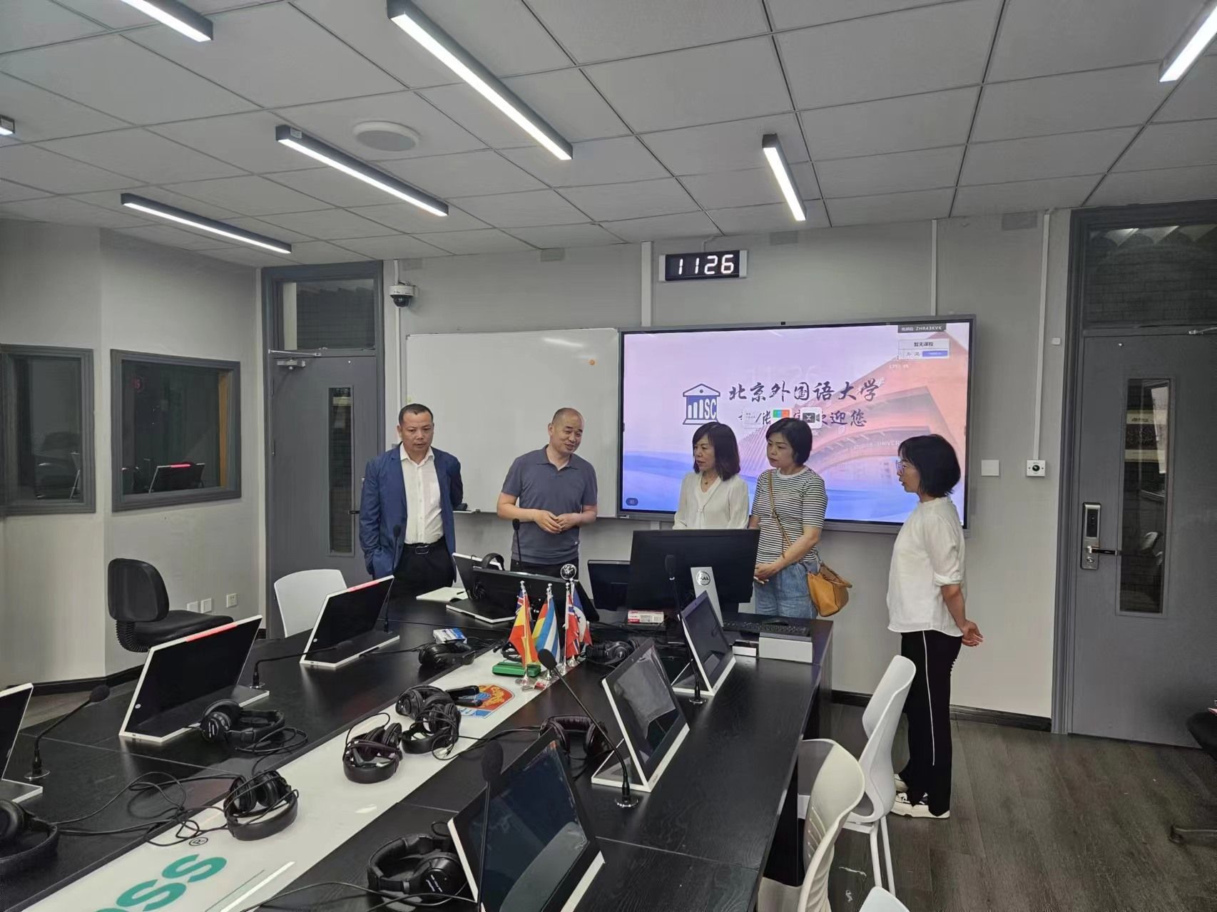 院长王丽、副院长冯雪、党政办主任李爽一行3人,就AI一体化语言赋能教学实训系统建设项目,到北京外国语大学调研。