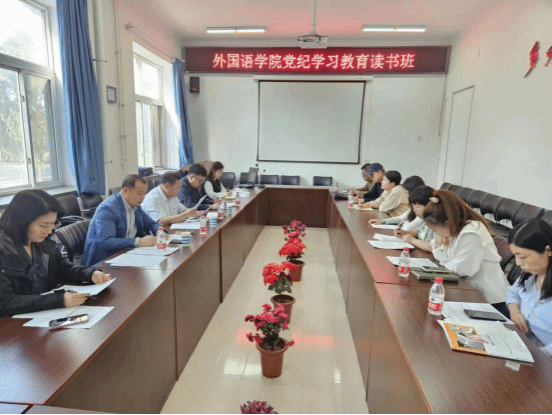 在知行楼202举办党纪学习教育读书班。党委书记苏海泉主持会议,学院中层以上党员干部参加学习。
