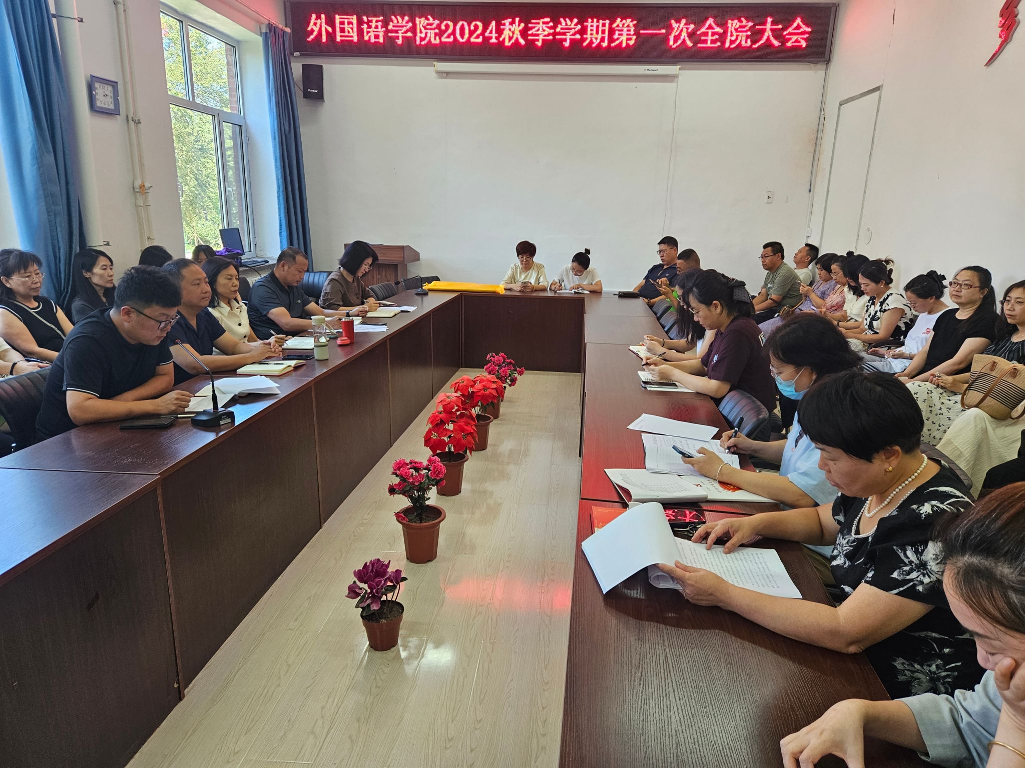 工作平稳过渡阶段取得的主要工作成效,并布置2024-2025学年创新改革阶段,学院在研究生教学改革实施,“通专融合”大学英语教学改革,英语专业教学改革的路径实践,学院科研团队建设,学院教学大赛和学院科研立项等方面工作。