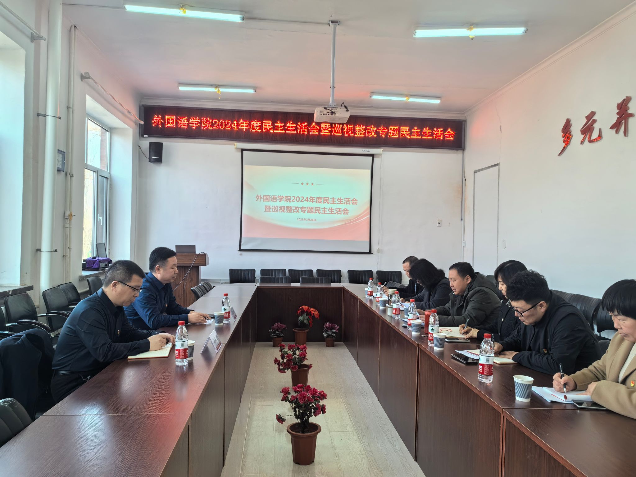 在知行楼202召开2024年度领导班子民主生活会暨巡视整改专题民主生活会。校党委常委、党委统战部、党委教师工作部部长汪玉柱,综合科科长胡文全到会指导。学院党委书记苏海泉主持会议,党委领导班子成员参加会议,院长王丽列席会议。