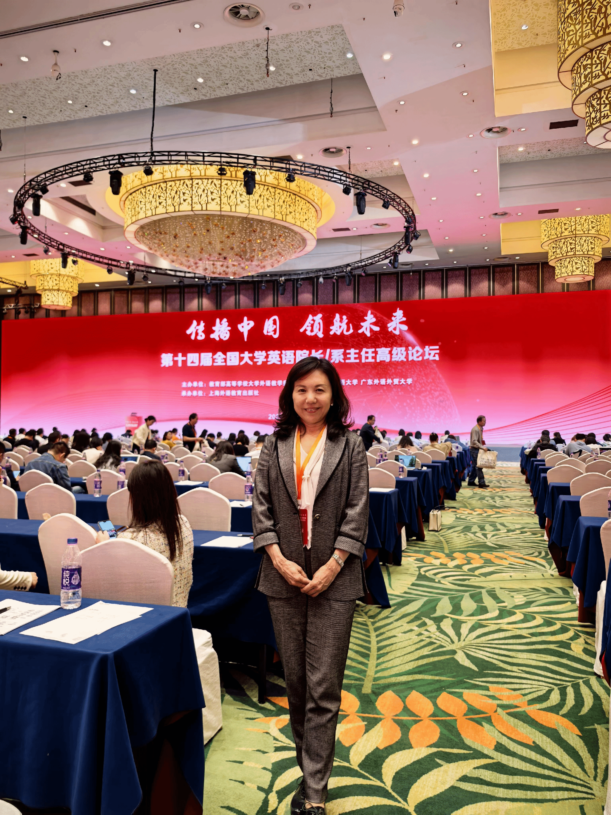 参会,与全国同行专家就大学英语教学的创新发展进行了广泛交流。王丽教授在会议期间认真聆听了来自国内外专家的精彩报告,深入学习了大学英语教学改革的最新理念与实践经验,并在分论坛上与其他高校代表就大学外语课程建设、数字化教材、智慧教学模式以及国际传播人才培养等议题展开了深入讨论。