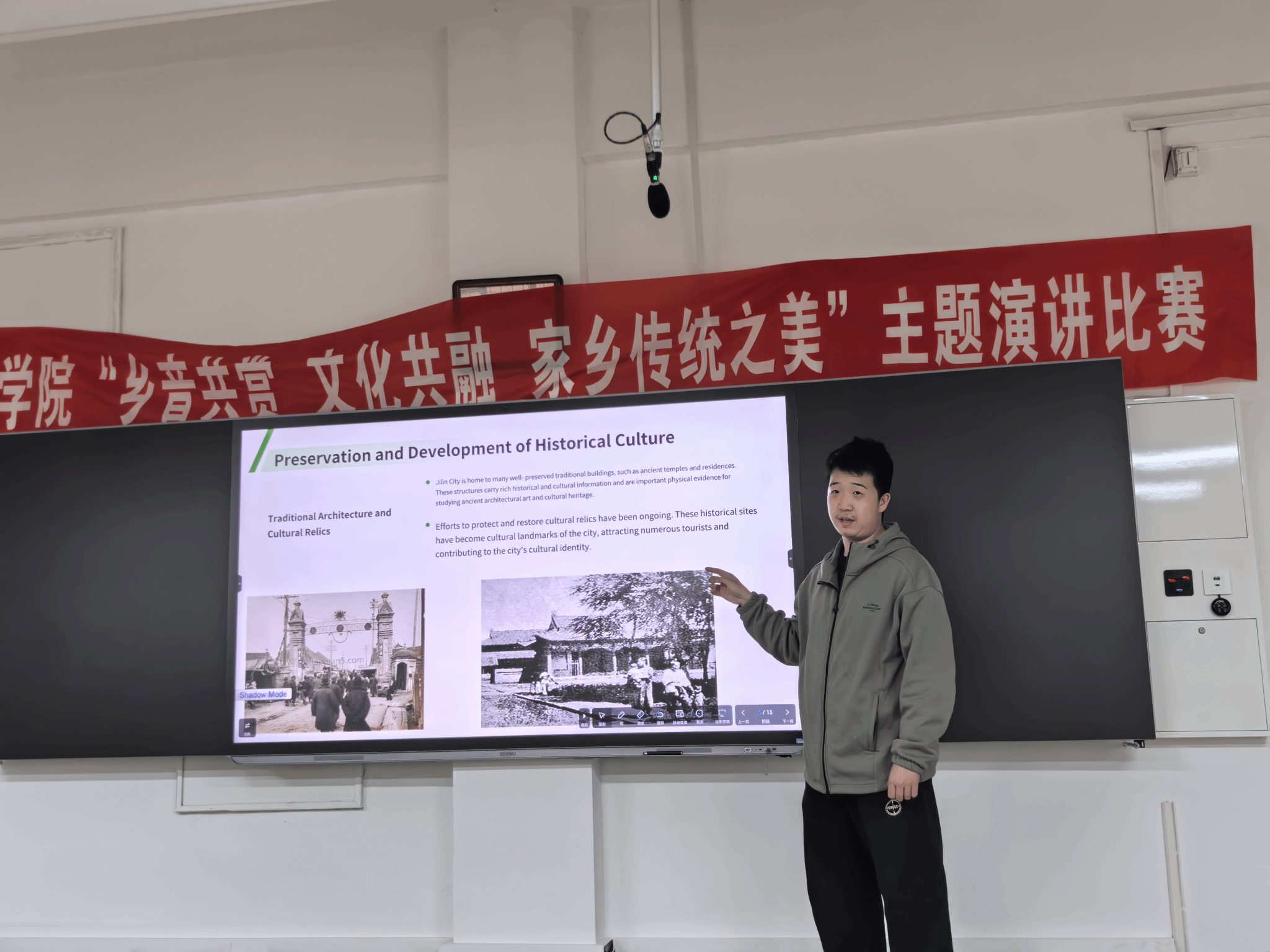 于新华楼106成功举办第二届"乡音共赏,文化共融,家乡传统之美"英语演讲比赛。本次活动由学院学生工作部主办,2024级全体学生共同参与。