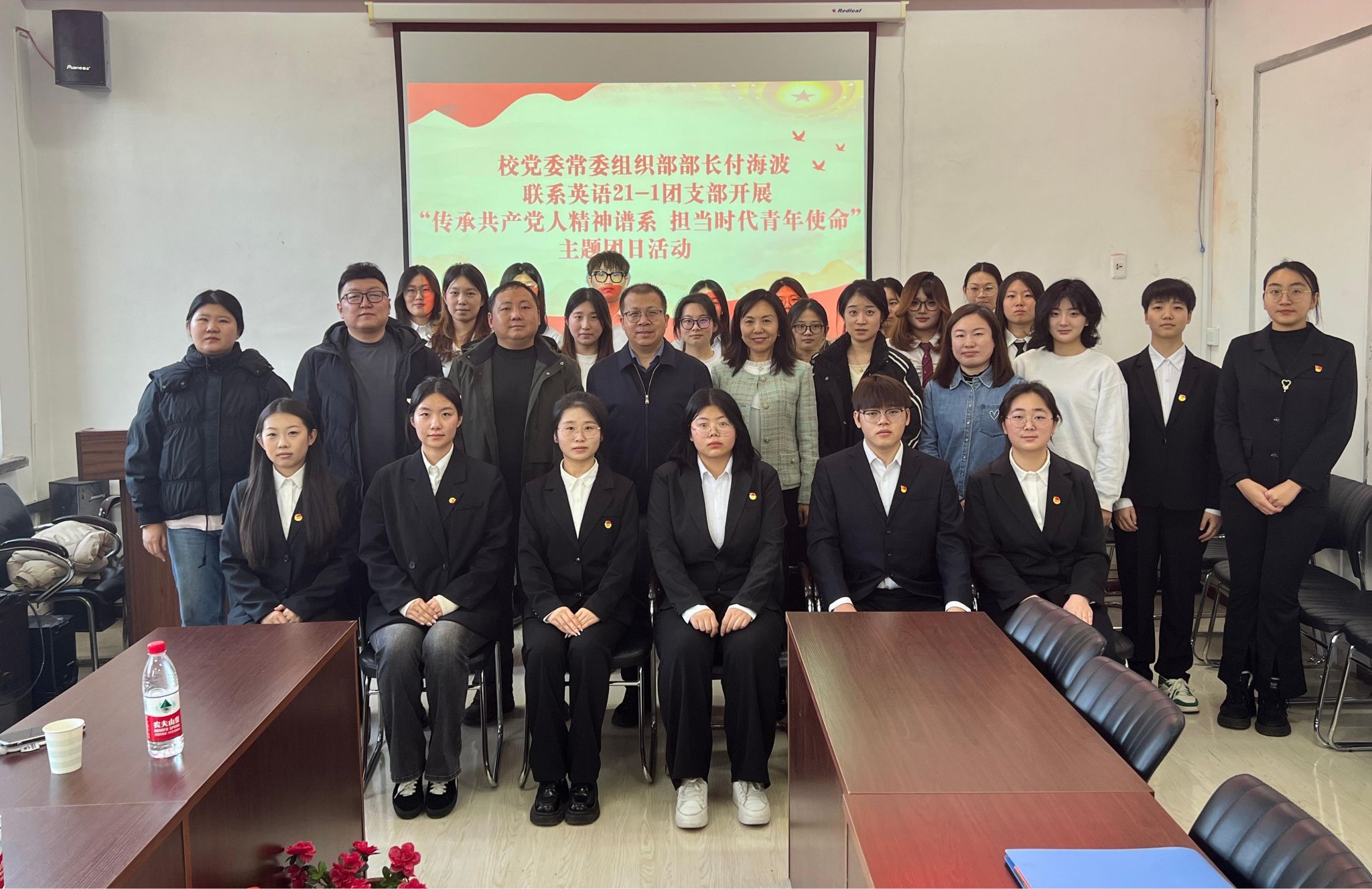 “传承共产党人精神谱系,担当时代青年使命”主题团日活动在学院二楼会议室举办。校党委常委、组织部部长付海波,学院党委书记苏海泉、院长王丽、副书记杨洋、组织员宋红雪、辅导员黄秋雨、杨雯雯等领导和老师与学生党员、团员共同参加活动。