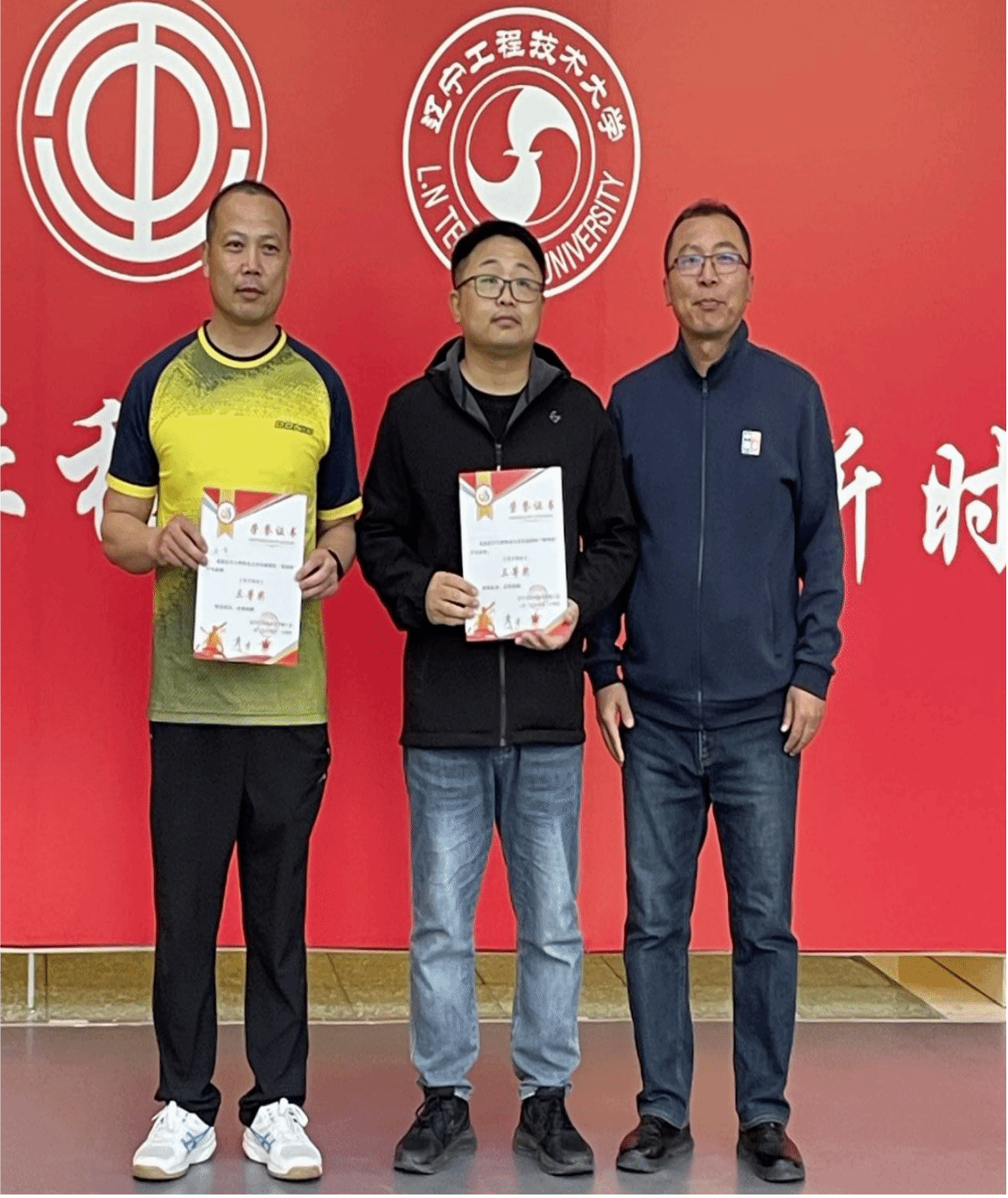 在男子单打比赛中,冯雪老师顽强拼搏,最终获得男子单打三等奖的好成绩。