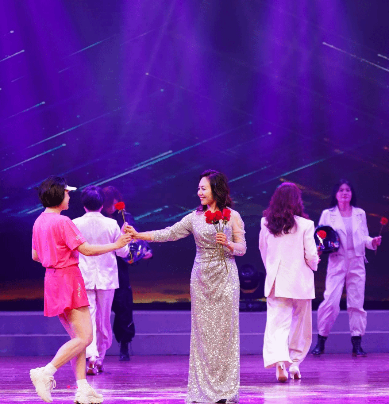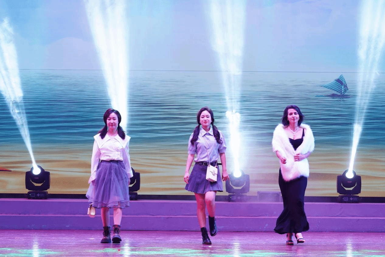 由王丽、于兰、李爽、赵紫薇、杨艳、巩艳博、赵丹、张淼、由桂芝、金微婷、外教Kate,总计11名女教师组成的团队,凭借精湛的表现、独特的创意,从众多参赛队伍中脱颖而出,一举斩获大赛一等奖。这群平日里在三尺讲台上挥洒知识的园丁,首次踏上走秀舞台便大放异彩,用实力与热情书写了属于自己的华丽篇章。