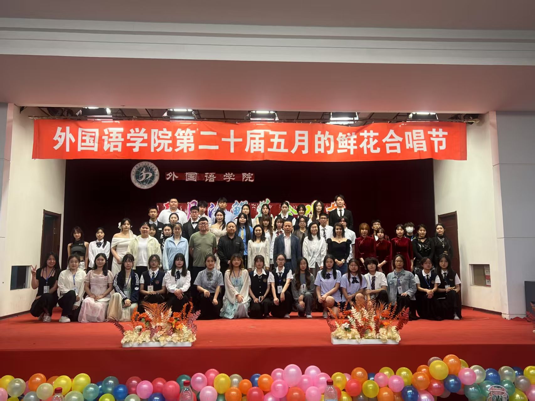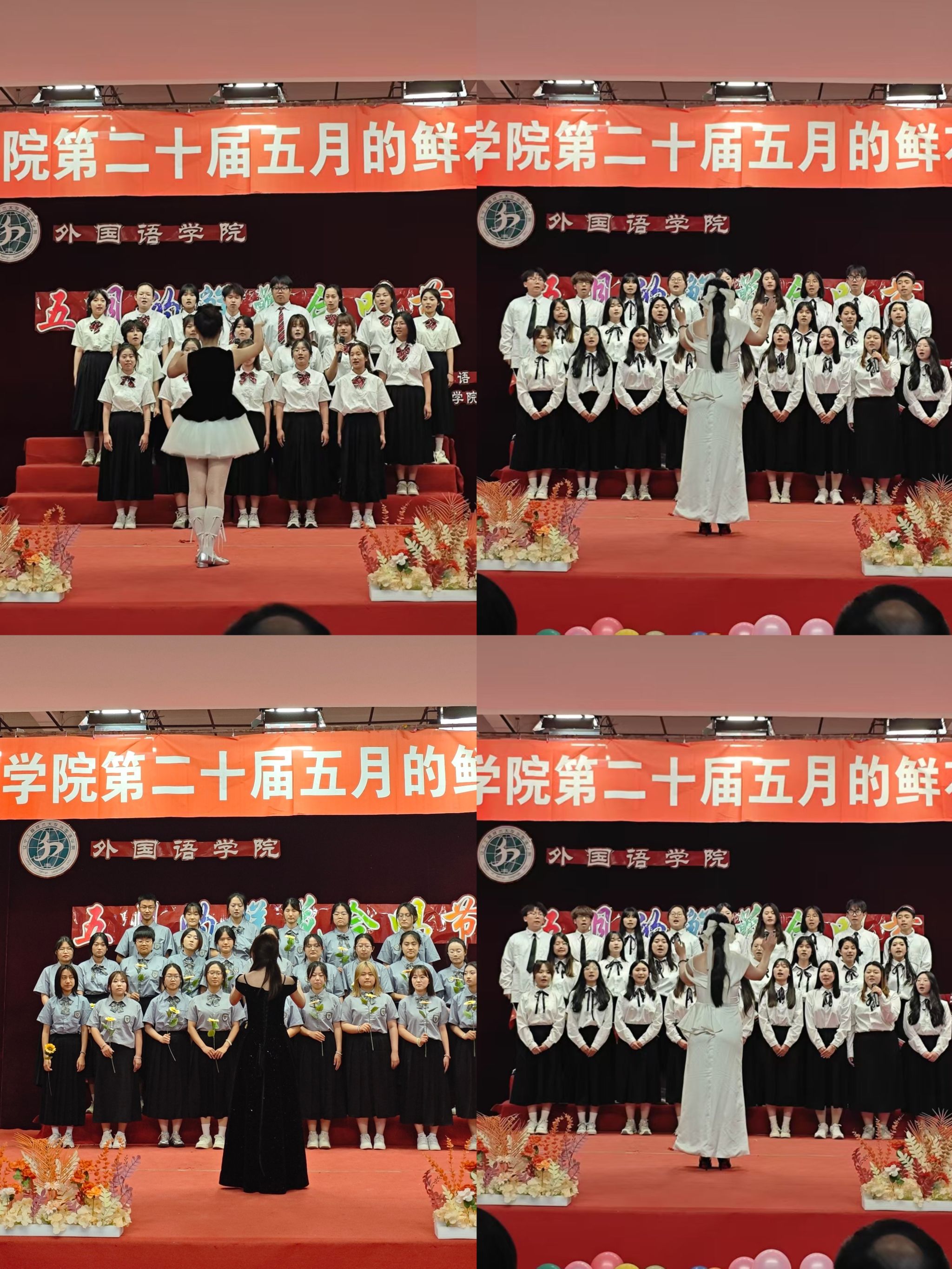 在大学生活动中心举办第二十届“五月的鲜花”合唱节。学院党委书记苏海泉教授、院长王丽教授、党委副书记兼副院长杨洋、副院长冯雪、外教Kate等担任本次活动评委。2023级和2024级6个班级齐聚一堂,展开一场别开生面的音乐较量,学院师生代表现场观看合唱比赛。