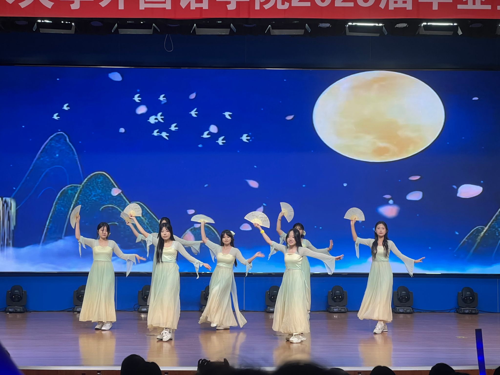 毕业典礼结束后,师生同台为毕业生们送上了歌曲、舞蹈、小品以及音乐剧等形式的文艺晚会。 最后,毕业晚会在全体毕业生合唱《再见》中落下帷幕,歌声嘹亮,饱含着对未来的美好祝愿,也承载着同学之间深厚的情谊。
