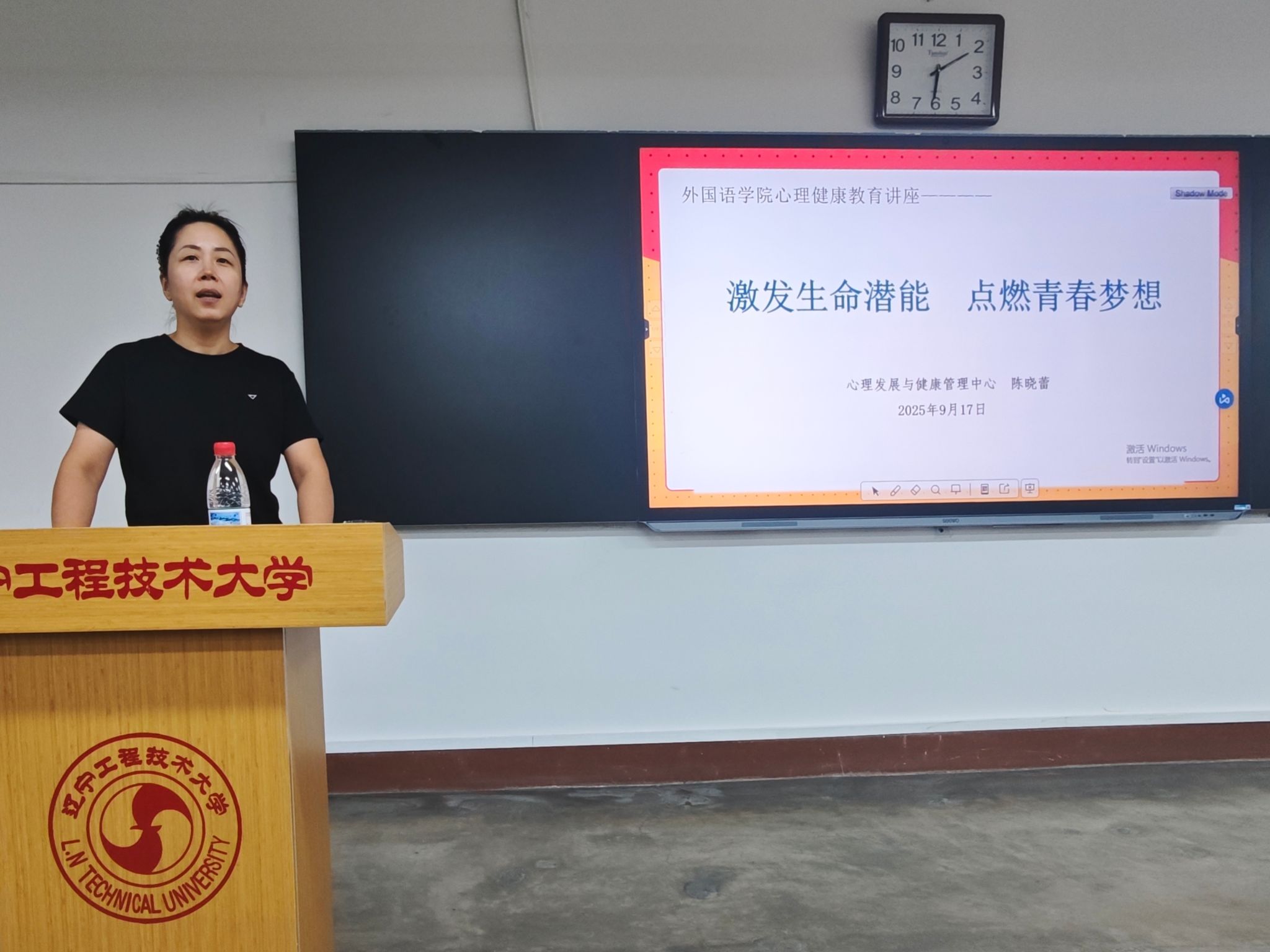 于新华楼208举办“激发生命潜能,点燃青春梦想”主题心理健康教育讲座。本次讲座特邀校心理发展与健康管理中心副主任陈晓蕾老师主讲,25级全体学生参加。