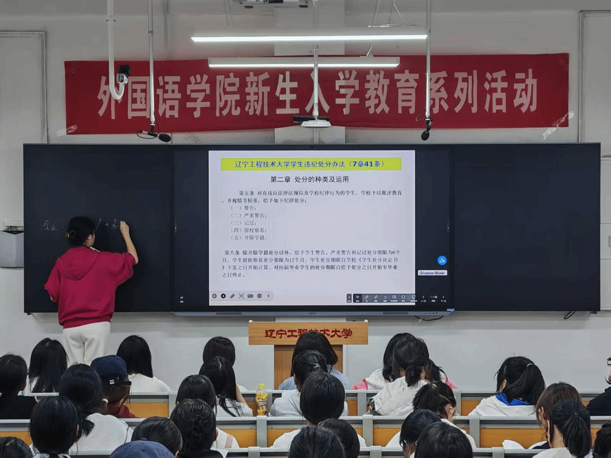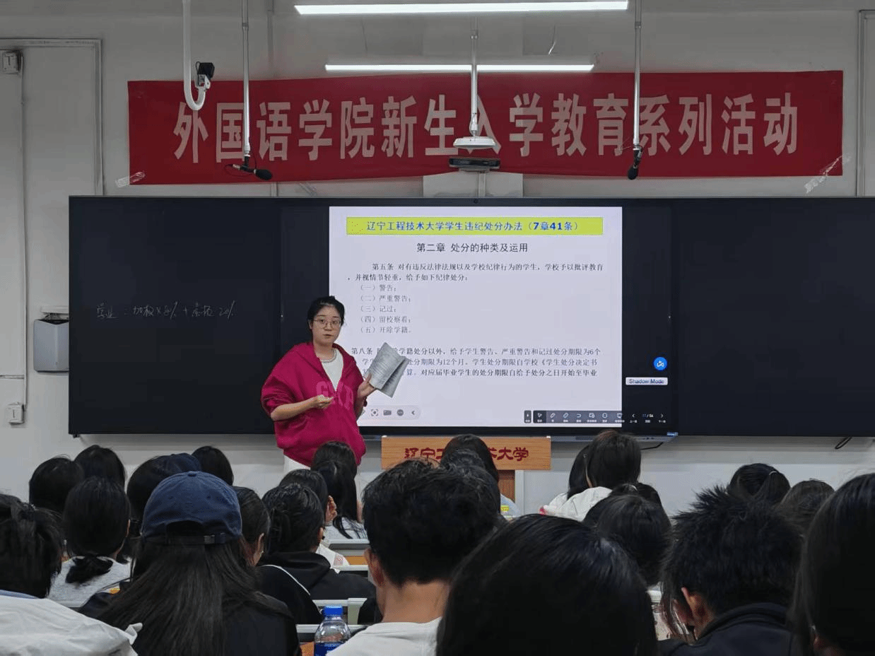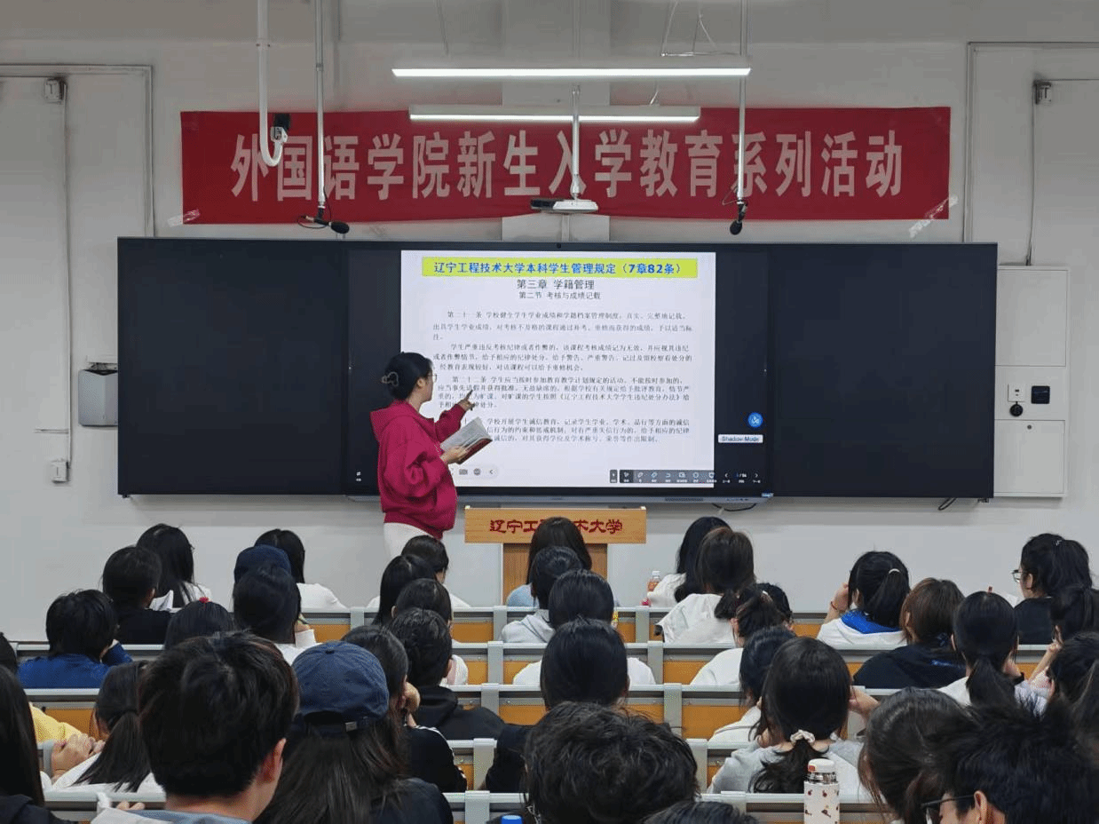 在新华楼203教室举办《学生手册》教育。本次会议由学工部主任杨雯雯老师主讲,25级全体学生参加。