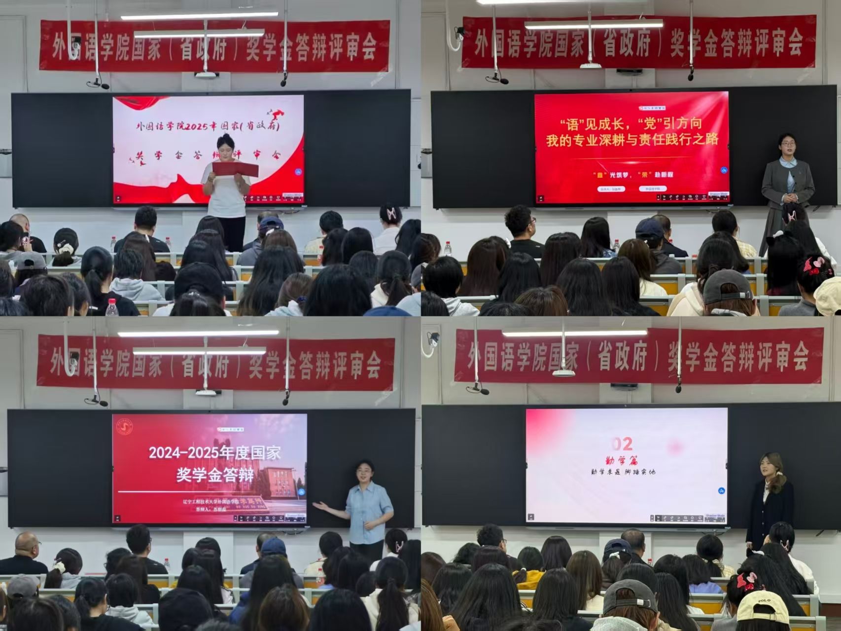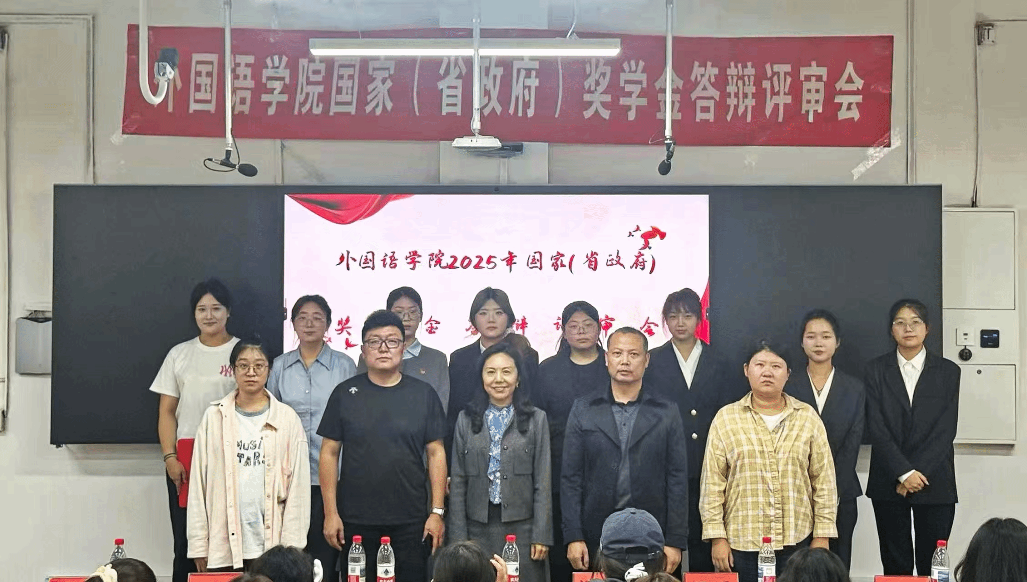 2024-2025年度本科生国家(省政府)奖学金答辩评审会,本次评审会邀请到学生处副处长张建双担任评审嘉宾,院长王丽、党委副书记杨洋、副院长冯雪、学工部主任杨雯雯、团委书记黄秋雨担任评委,2025届全体新生和7名申报学生参加。
