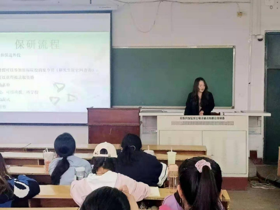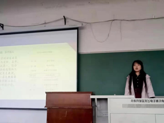褚诗楠首先进行了一个简单地自我介绍,随后,她向低年级同学展示了她在大学四年中所获得的荣誉也讲述了她保研的流程和经验,提醒低年级同学好好学习的重要性,希望在场的每一个人在积极参与学校举办各项个性活动的同时也要刻苦学习;172班的陈奕如作为校学生会执行主席,通过展示她丰富的大学经历,既强调了学习的重要性,也分享了她四年以来作为学生干部的经验,让在座的每一名同学都不再迷茫,有了努力前进的动力与方向。