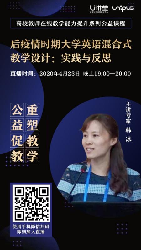 U讲堂:高校教师在线教学能力提升系列公益课程——后疫时期大学英语混合式教学设计:实践与反思